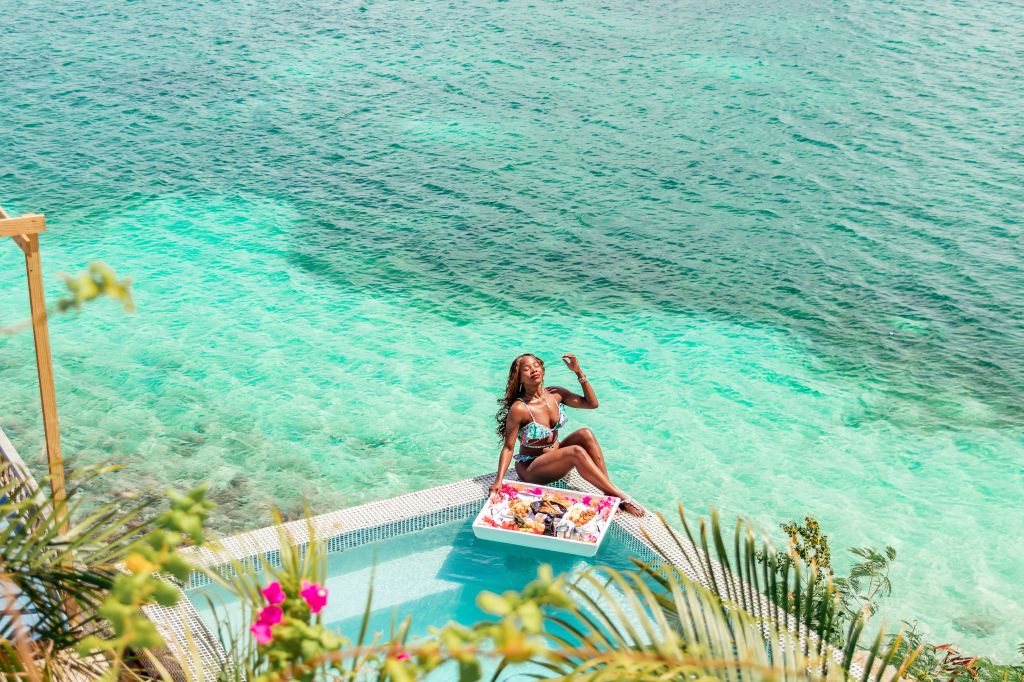 We booked the Azure Private Pool Suite which offered the most dramatic ocean views, a private balcony with hammock, private plunge pool, outdoor double ended slipper tub, and chairs. We also had a complimentary signature arrival airport pickup. Don’t miss out on the romantic package deal offered by the hotel which included Floating Breakfast or Tapas in the Black Rock, Romance or your private Room Pool, Couple’s Spa Treatment and Romantic Private Dinner.