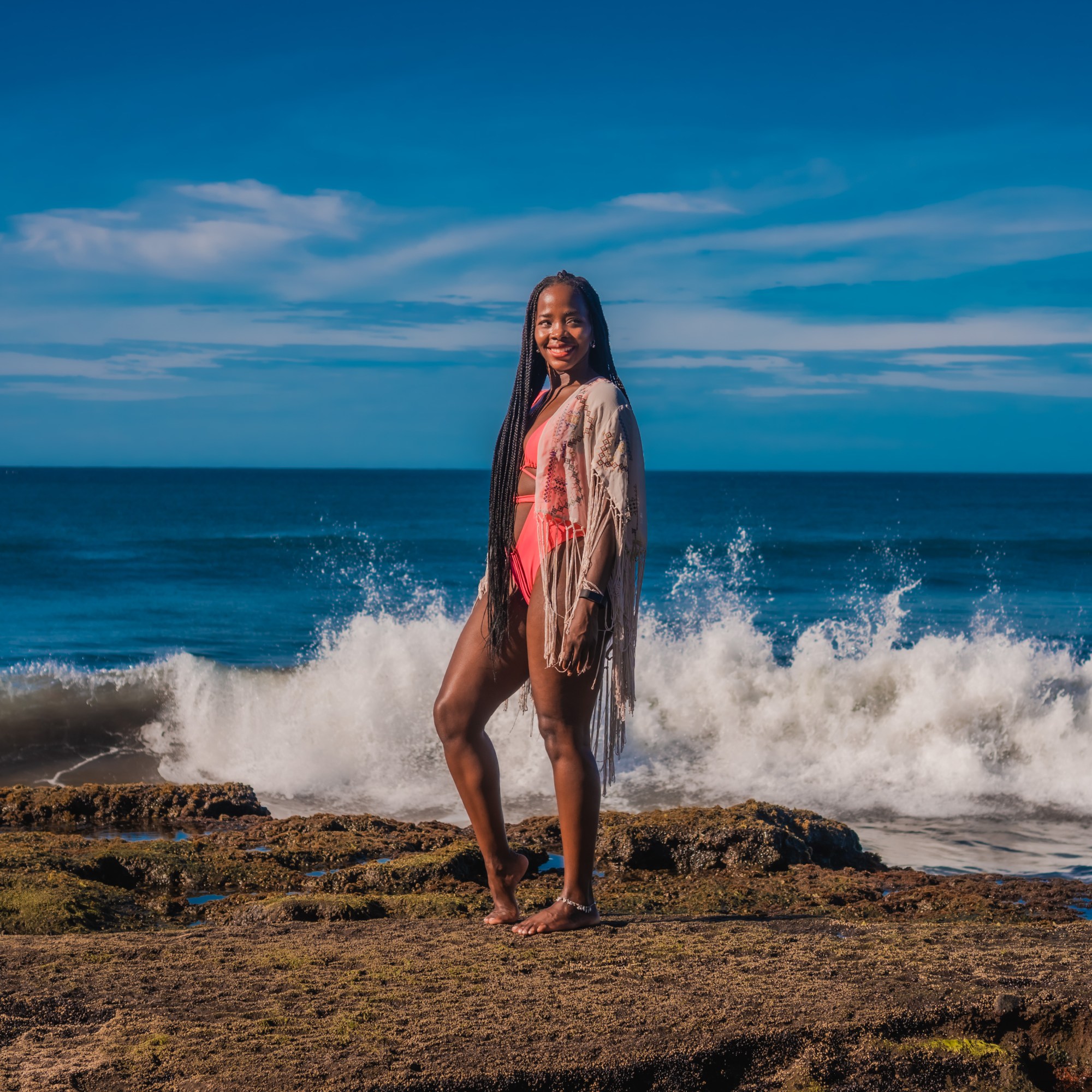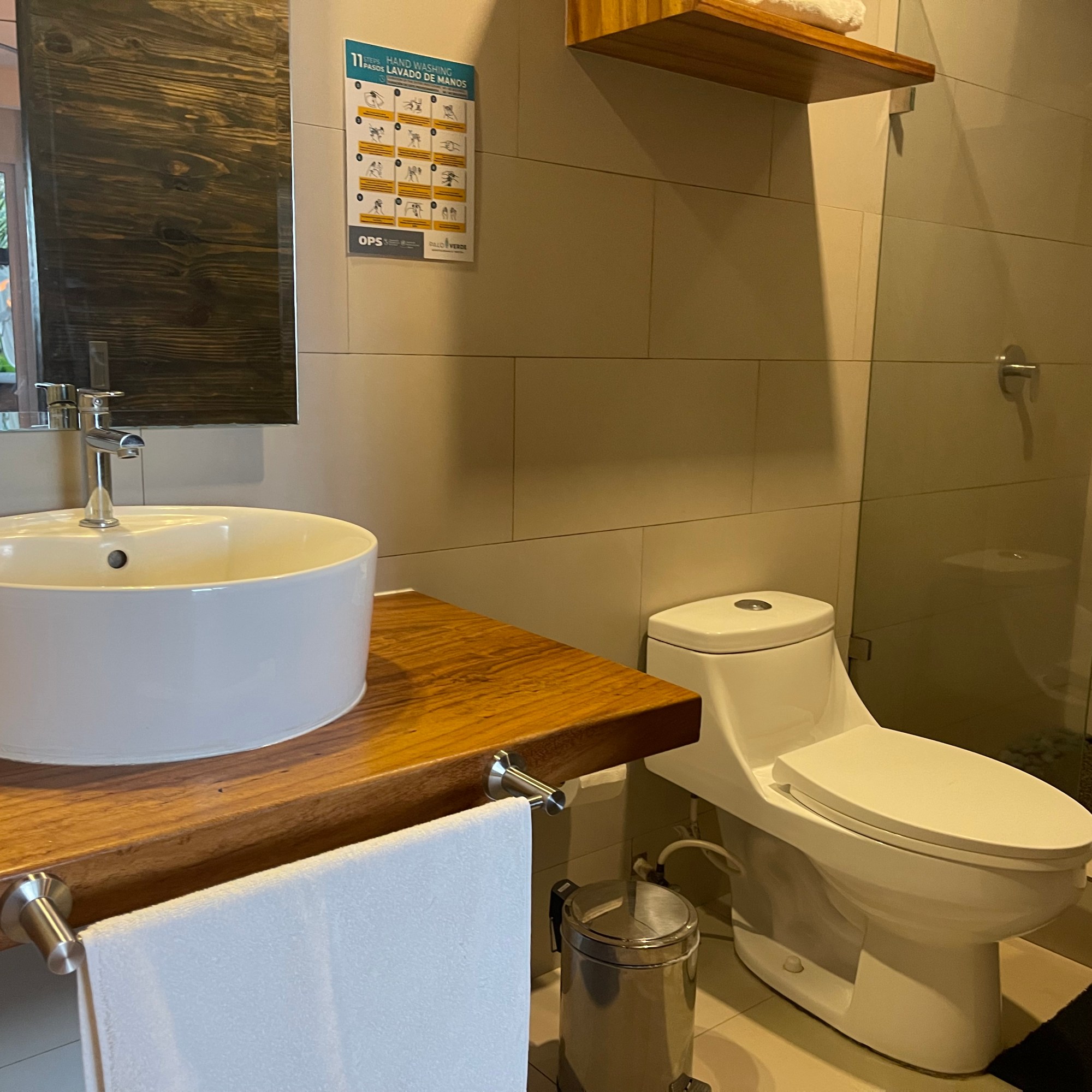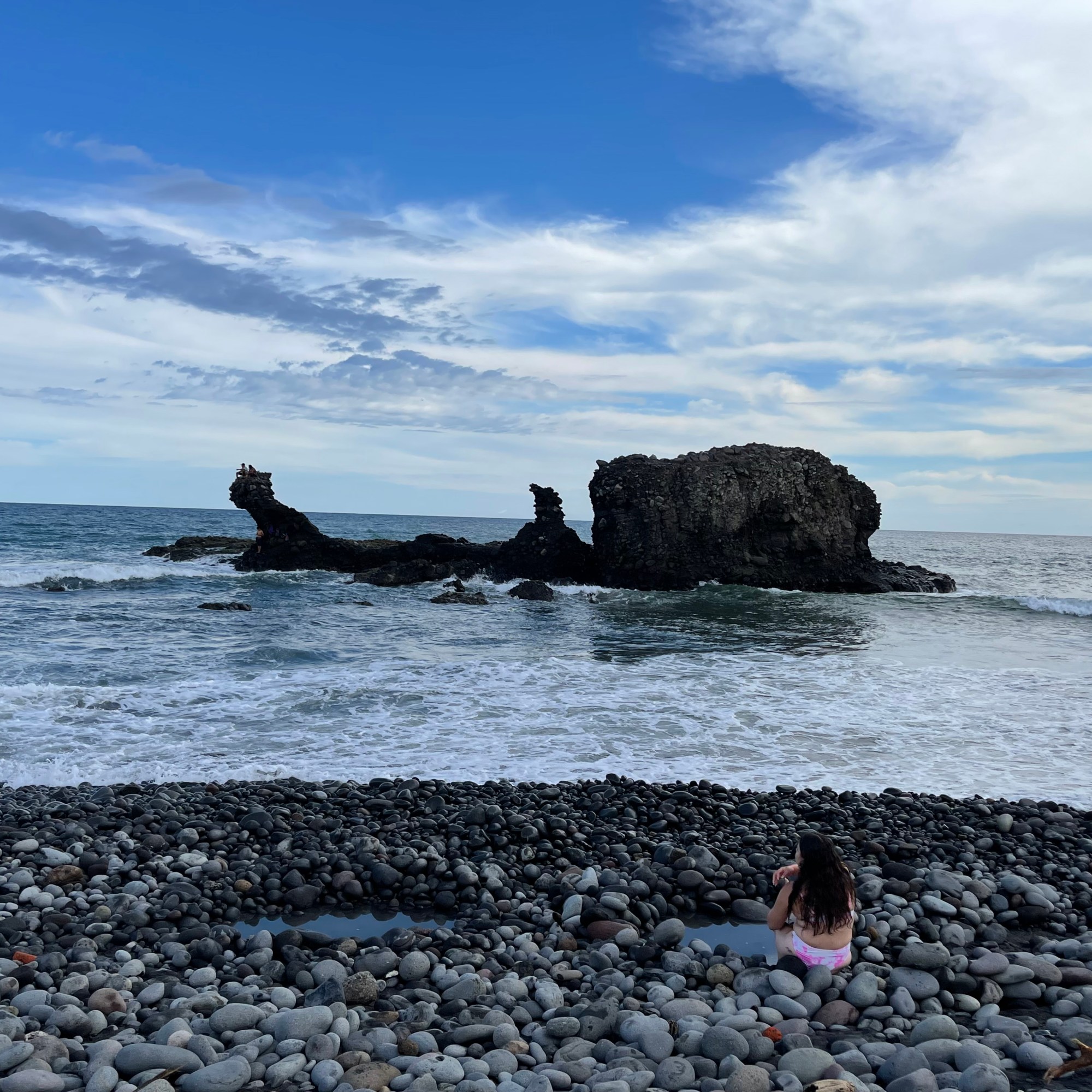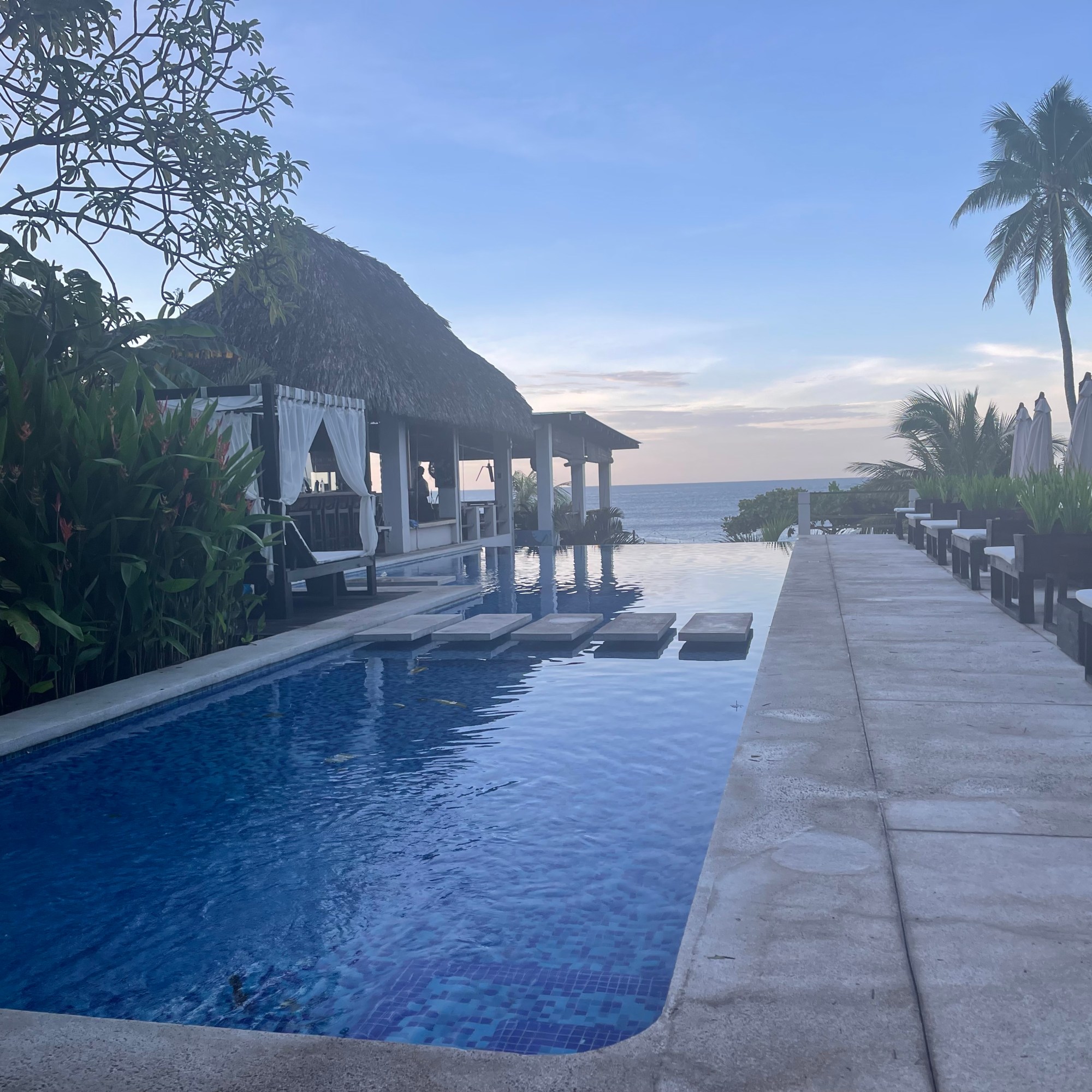 I stayed in El Zonte at Palo Verde Hotel. The sustainable hotel is small but cozy. Because I arrived late on the first day, I had to request to turn on the hot water since they didn’t keep it on 24/7. My room with a private patio was right in front of the beautiful infinity pool with a view of the surf beach. Despite being right on the coast the hotel did not have a pristine beach for relaxation. The boardwalk had rocks and pebbles just about everywhere. All the beaches visited were black or gray due to the volcanic nature of the country.