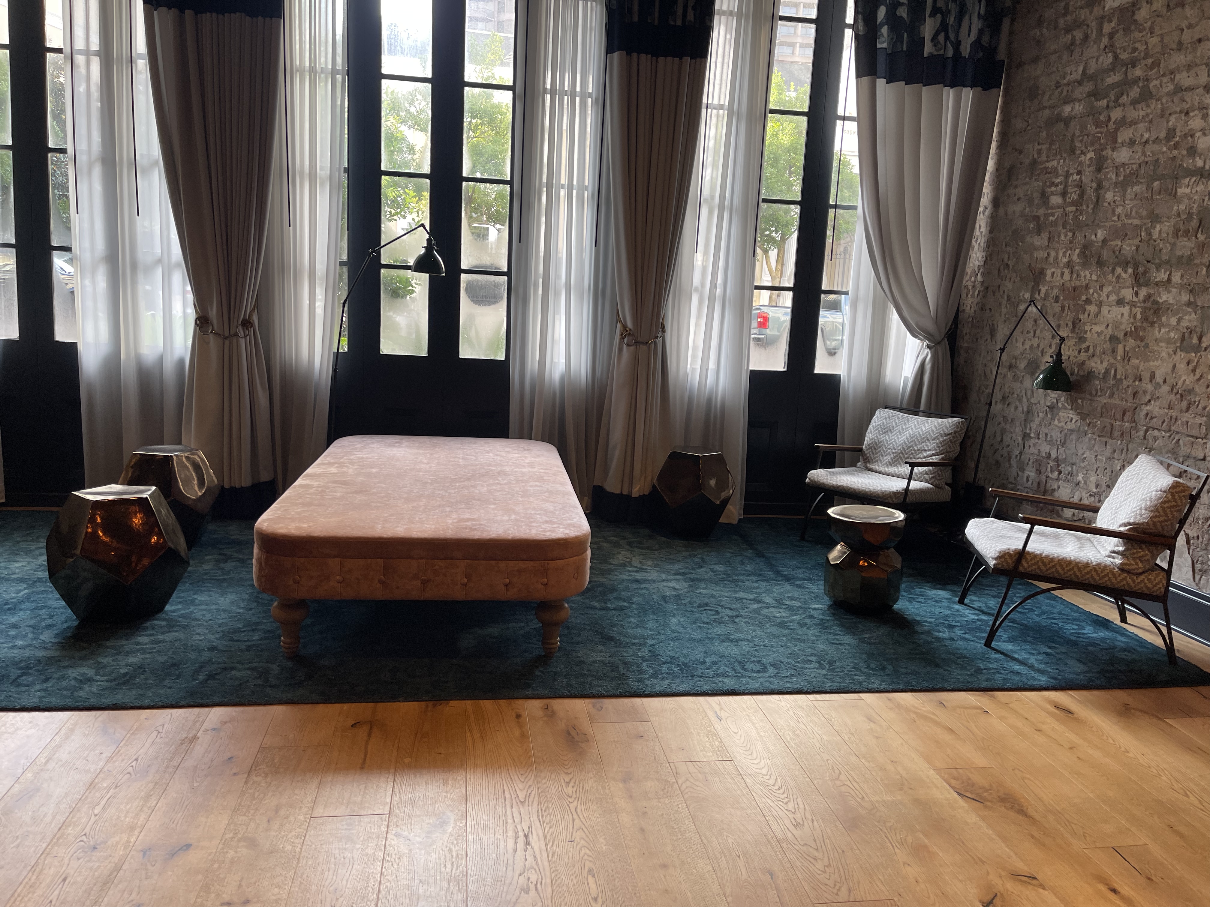 We landed on Friday at Noon from a direct flight at EWR airport. Right in front of the airport various taxis were waiting for passengers. They charged a fix rate which made things a lot easier. We were at The Eliza Jane hotel within almost an hour after exiting the aircraft. Our choice was between Tiffany’s or our chosen hotel. While Tiffany’s beds looked beautiful nothing could compare the bathroom in our suite. The selection was made without hesitation. Eliza Jane Hotel is by far one of my favorite hotels. Situated in a great location, close to the French Quarter and the Warehouse District but away from the crowds and noise. The designer did an impeccable job illustrating the historic past of the building by referencing each of its previous occupants. We stayed in the Editor’s Suite because of the Bathroom.